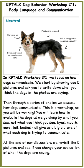 K9 TALK DOG BEHAVIOR WORKSHOPS